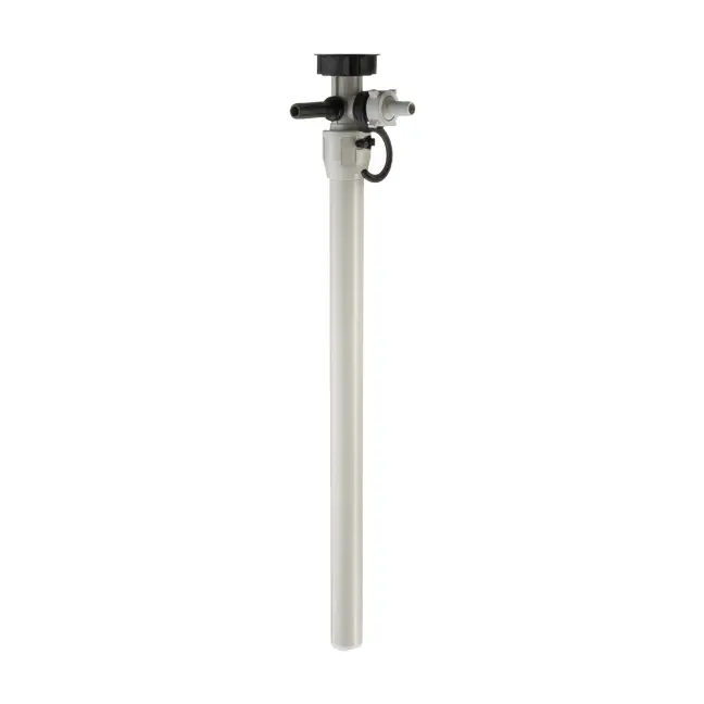 The F 425 incorporates a manual shut-off valve at the pump inlet, below the impeller. The operator opens and closes the valve using the lockable handles at the top of the pump tube. This unique feature allows the operator to close the pump inlet before withdrawing the pump from a barrel or IBC. By doing so, it prevents siphoning, backflow and spills, ensuring full control over liquid transfer processes, while addressing health and safety concerns. Back-flow elimination is particularly useful when handling expensive, hazardous, or environmentally sensitive materials.